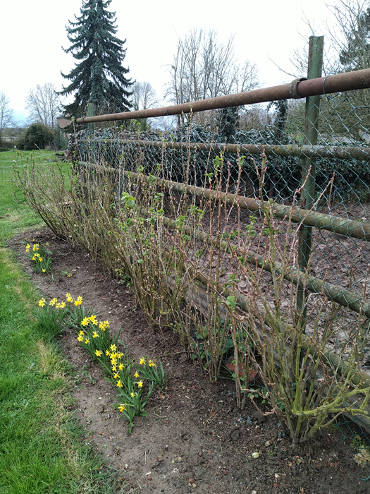 poireaux / persils / échalotes / courgettes / pieds de rhubarbes / et groseilles