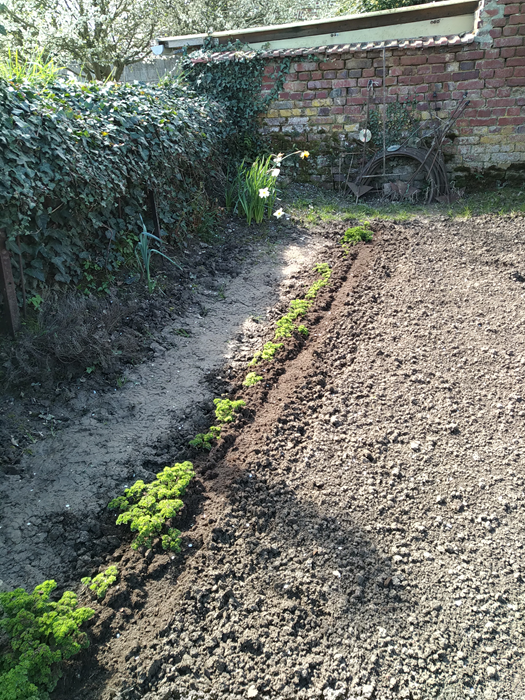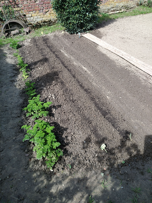 Un dernier petit bêchage dans le haut du potager et un semis de persils en parallèle a l'ancient