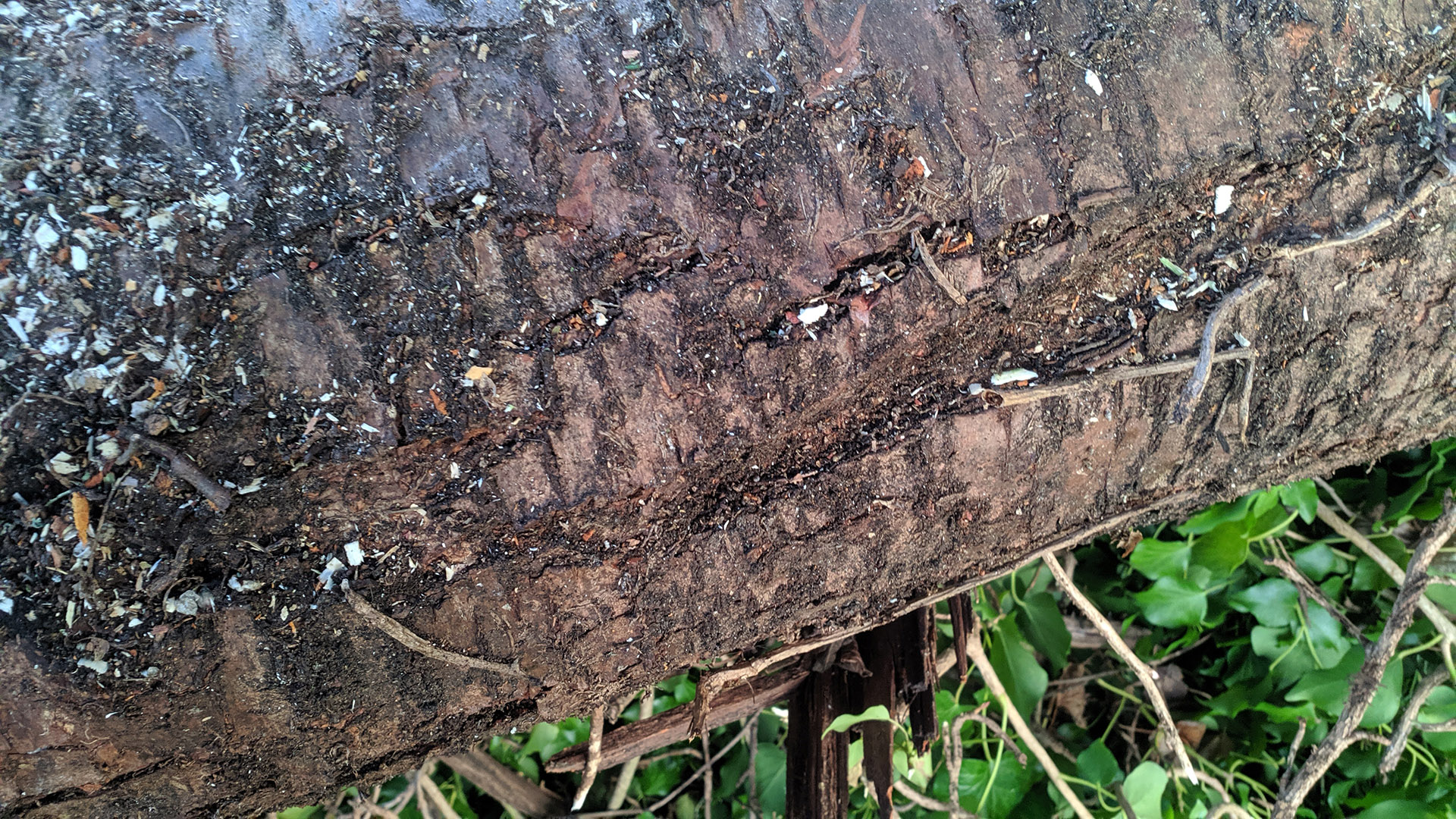 L'arbre avait fait une "fourche". L'un est donc tombé , l'autre est resté debout, pour le moment. De quel essence pourrait-il s'agir?