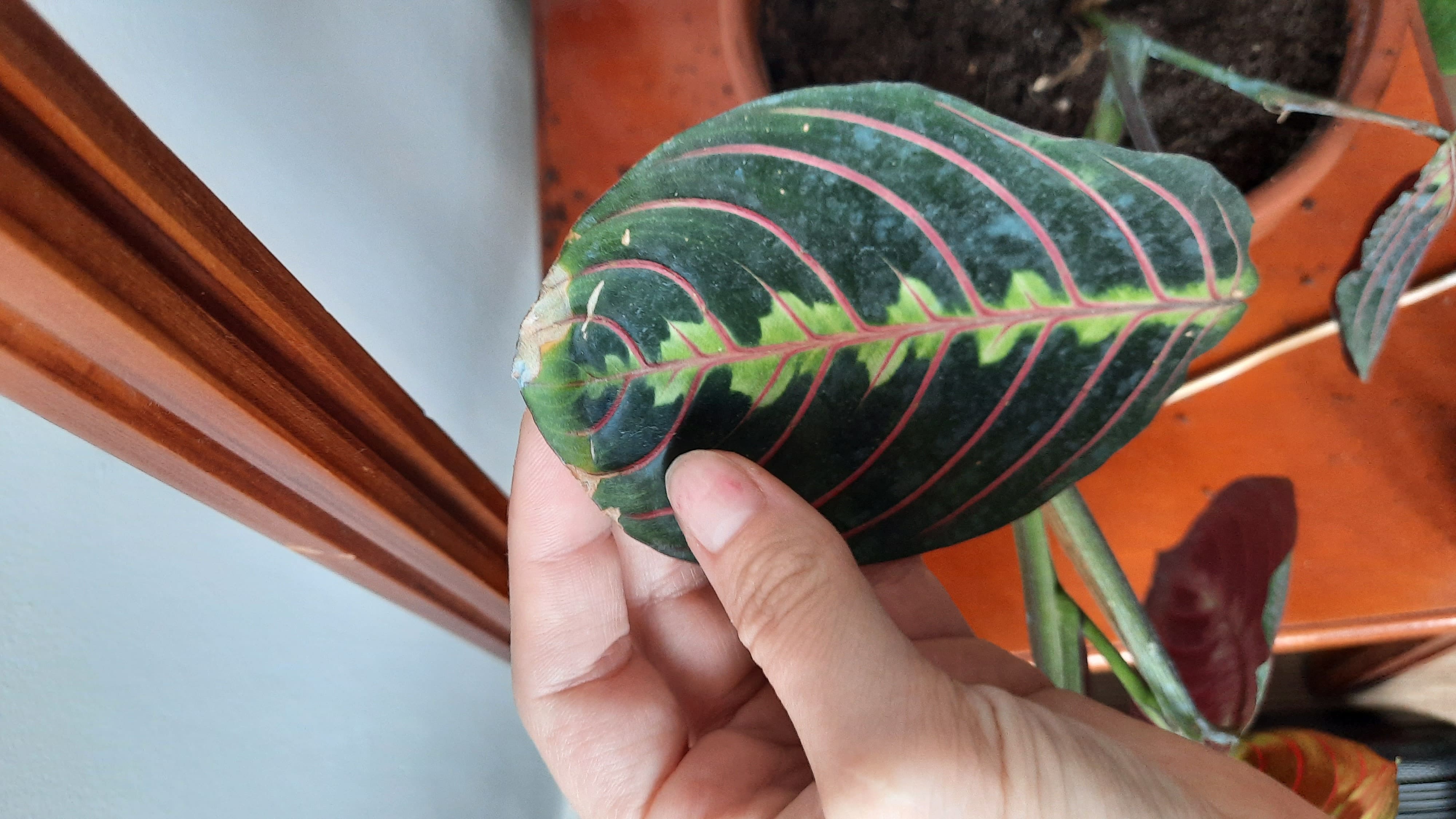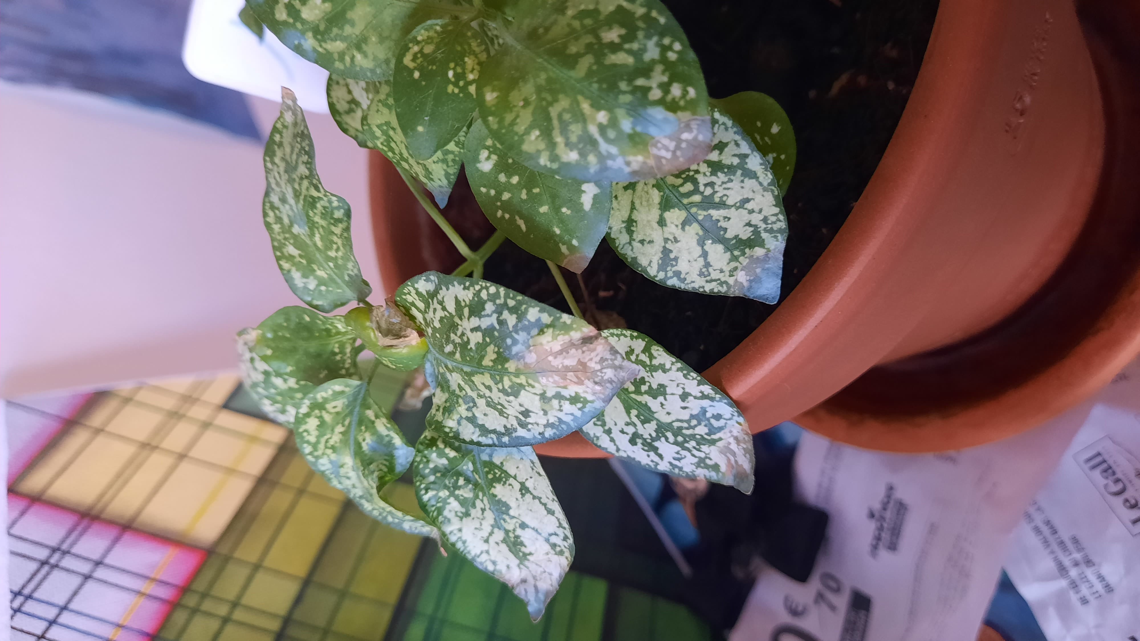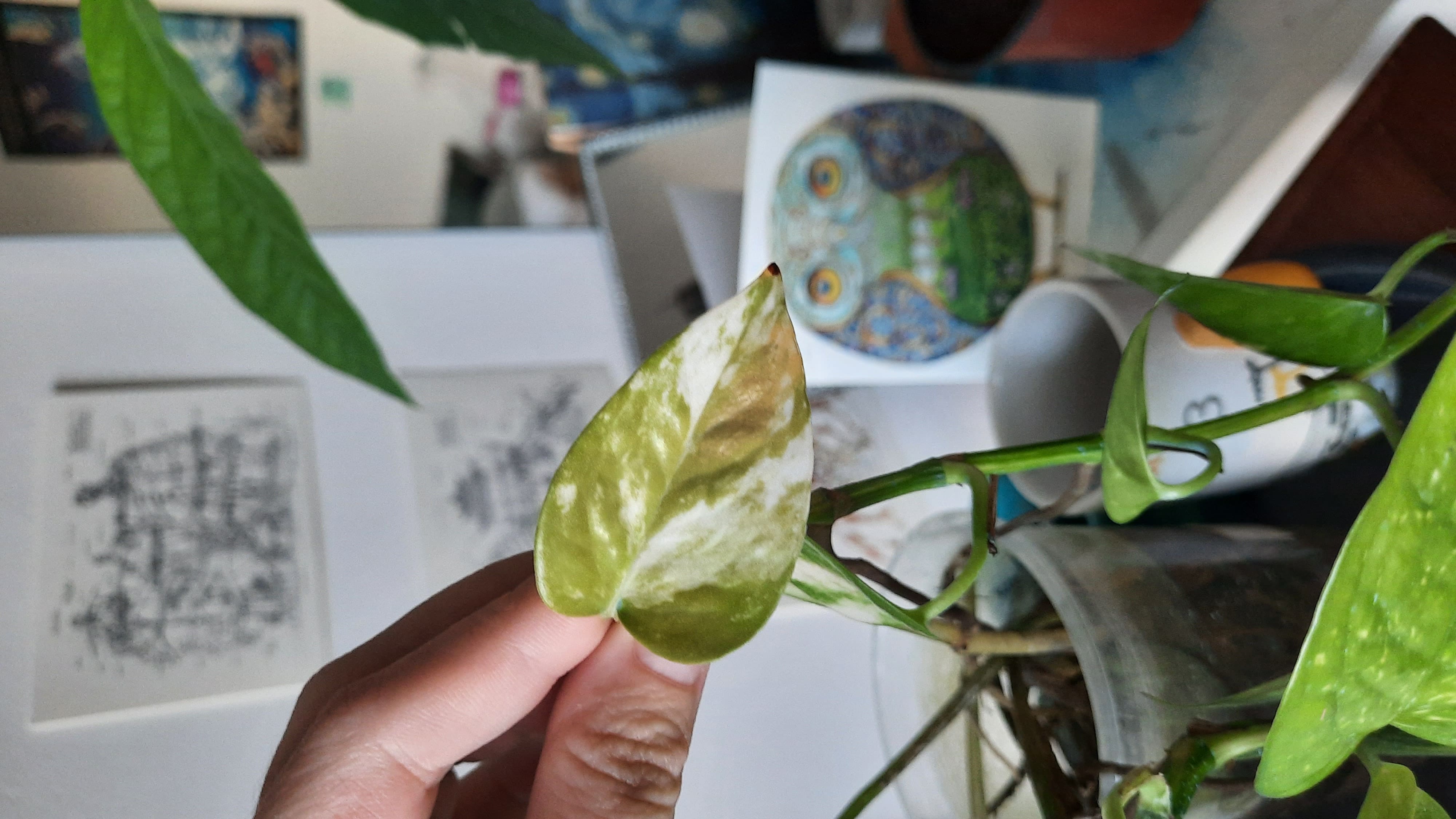 ça ne touche pas toute les plantes que j'ai dans la pièce, seulement un pothos, un hypoestes phyllostachya, et une maranta leuconeura (cf photos des feuilles des plantes citées)
