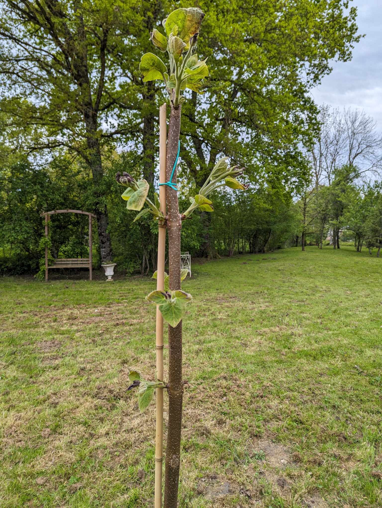 Je sollicite vos précieux avis et conseils concernant un Paulownia Tomentosa mal en point. J'essaye désespérément d'en faire pousser un dans mon jardin depuis 2022. J'en suis à mon deuxième sujet, et à chaque fois le même problème...