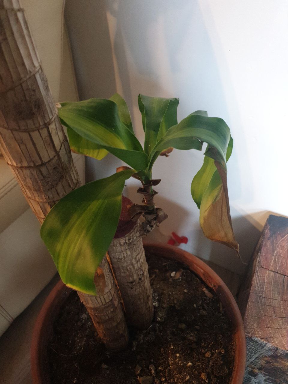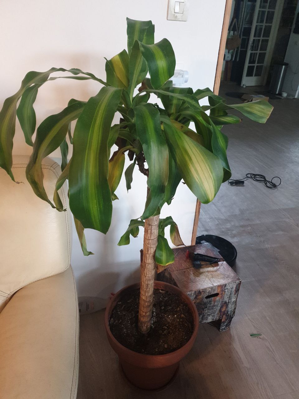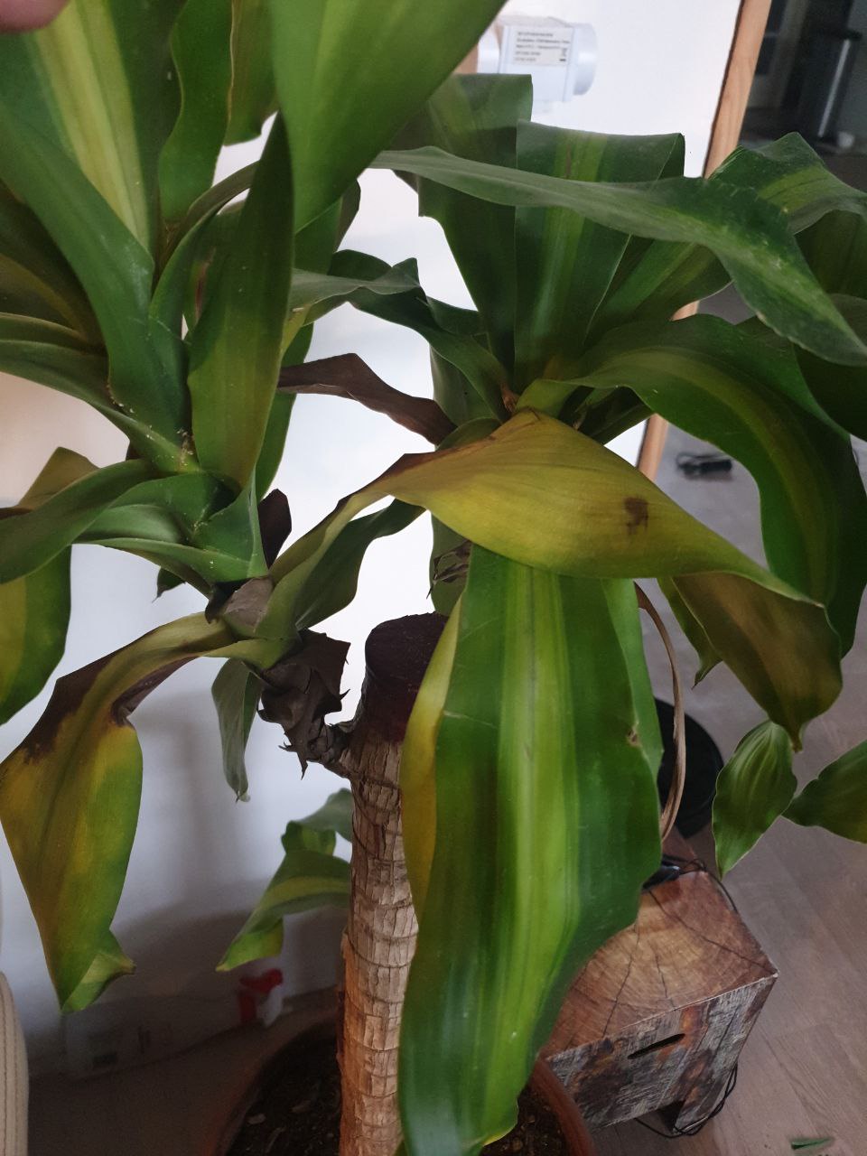 je n'ai jamais eu les mains vertes, mais je voulais vraiment mettre des plantes chez moi. j'ai acheté un dracaena, j'ai demandé conseil à la vendeuse, j'ai visionné des tutoriels, j'ai respecté les conseils pour le rempotage etc... Mais il va mal, comme les photos en témoigne.