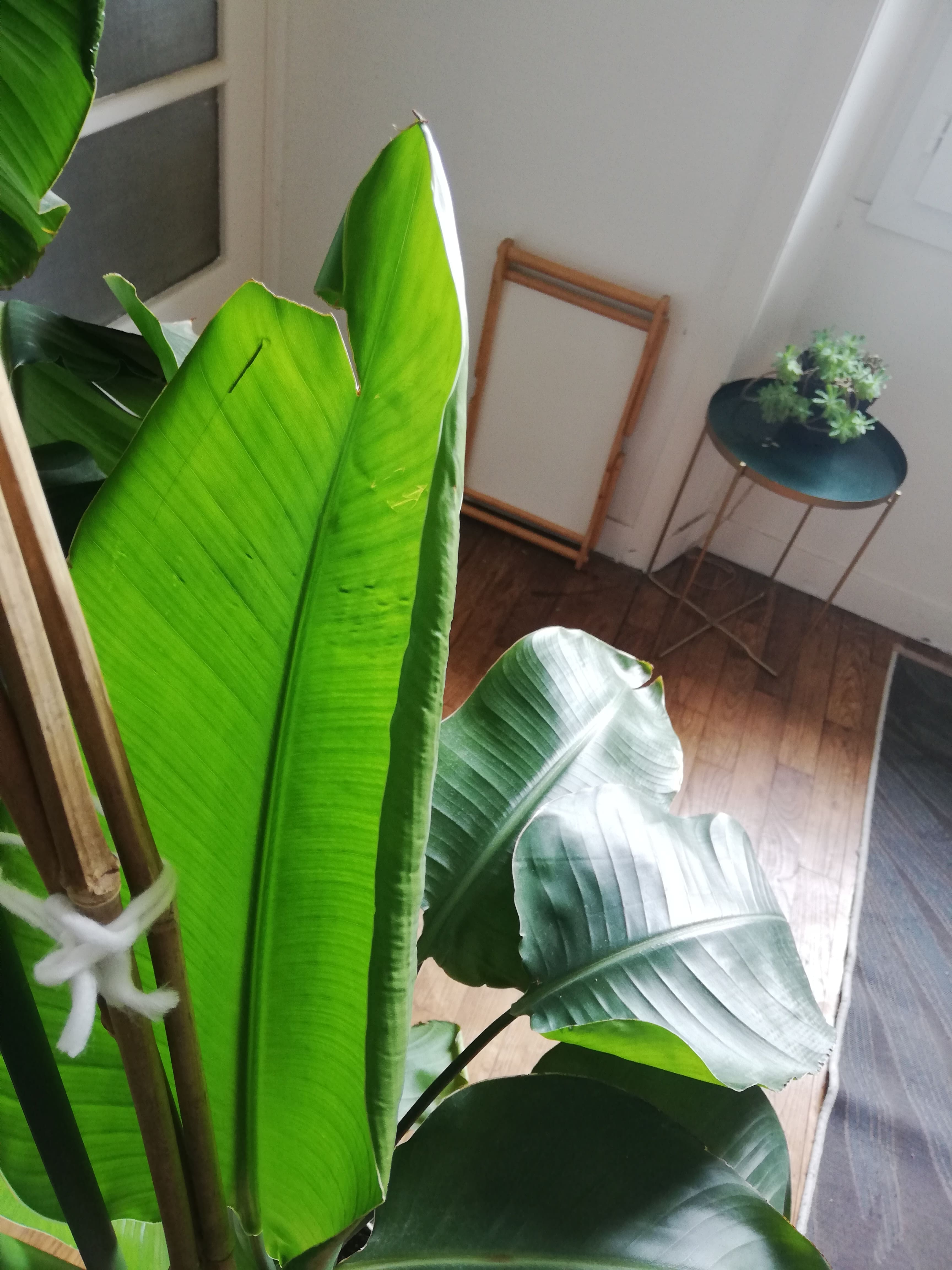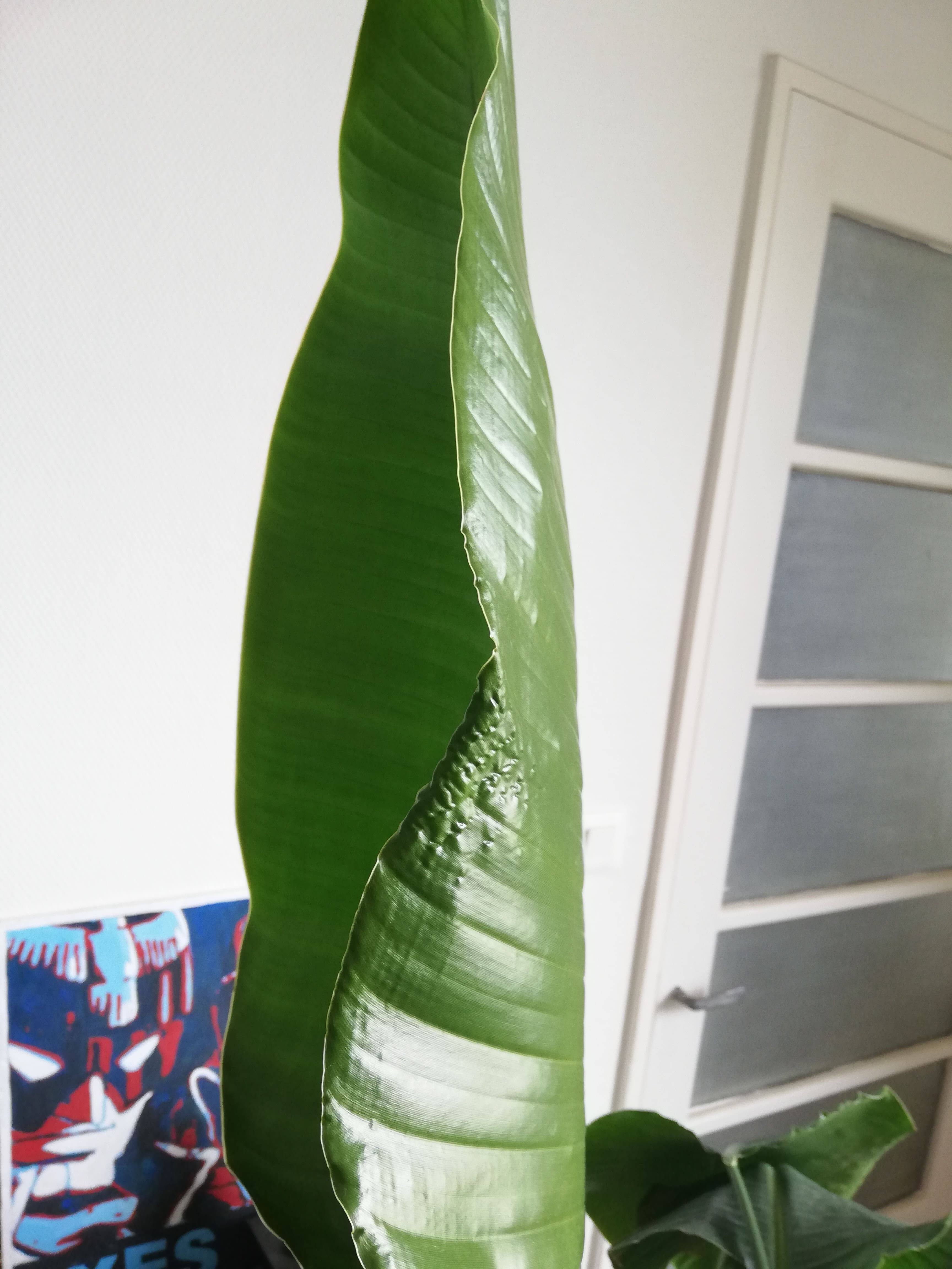 Depuis quelques temps j'ai remarqué que les feuilles de mon Strelitzia ont tendance à se recroqueviller, j'ai pris quelques photos :