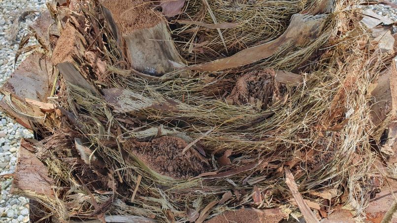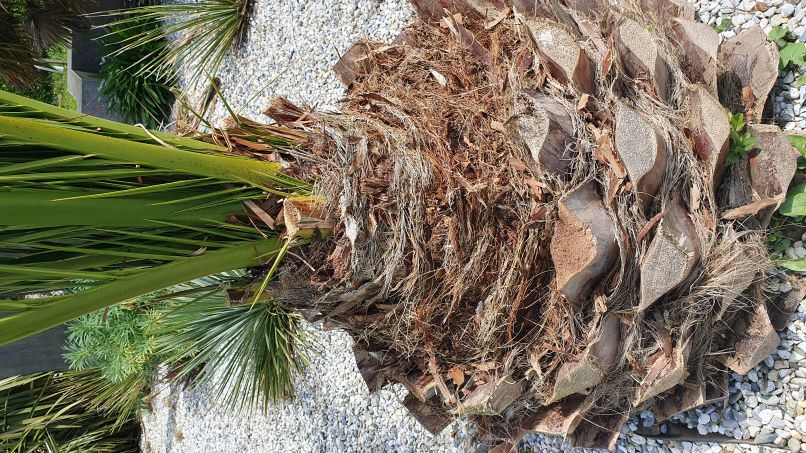 je viens de tailler plusieurs palmes qui étaient cassées avec le vent ou complètement désséchées