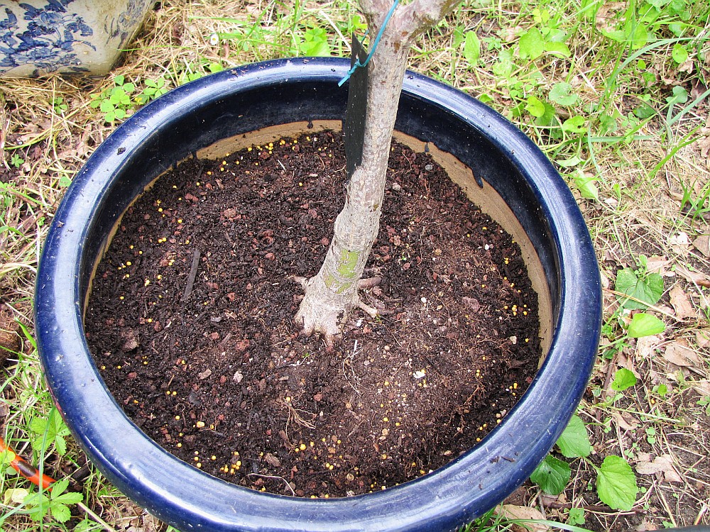 En dépit du pluviomètre souvent rempli depuis 6 mois, nous sommes fin mai et il ne fait pas chaud, les érables en pot ont quand même besoin d’être arrosés; veillez-y.