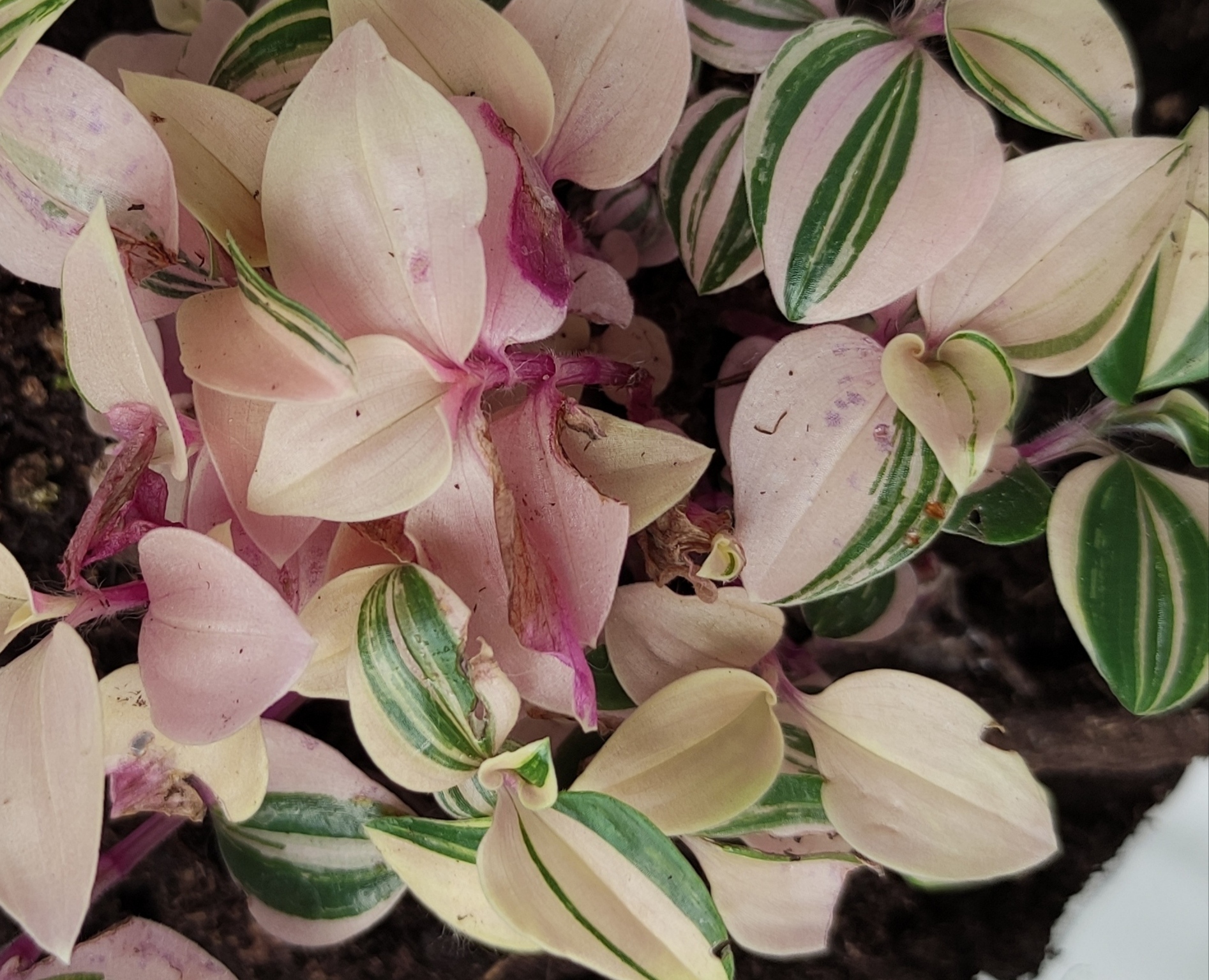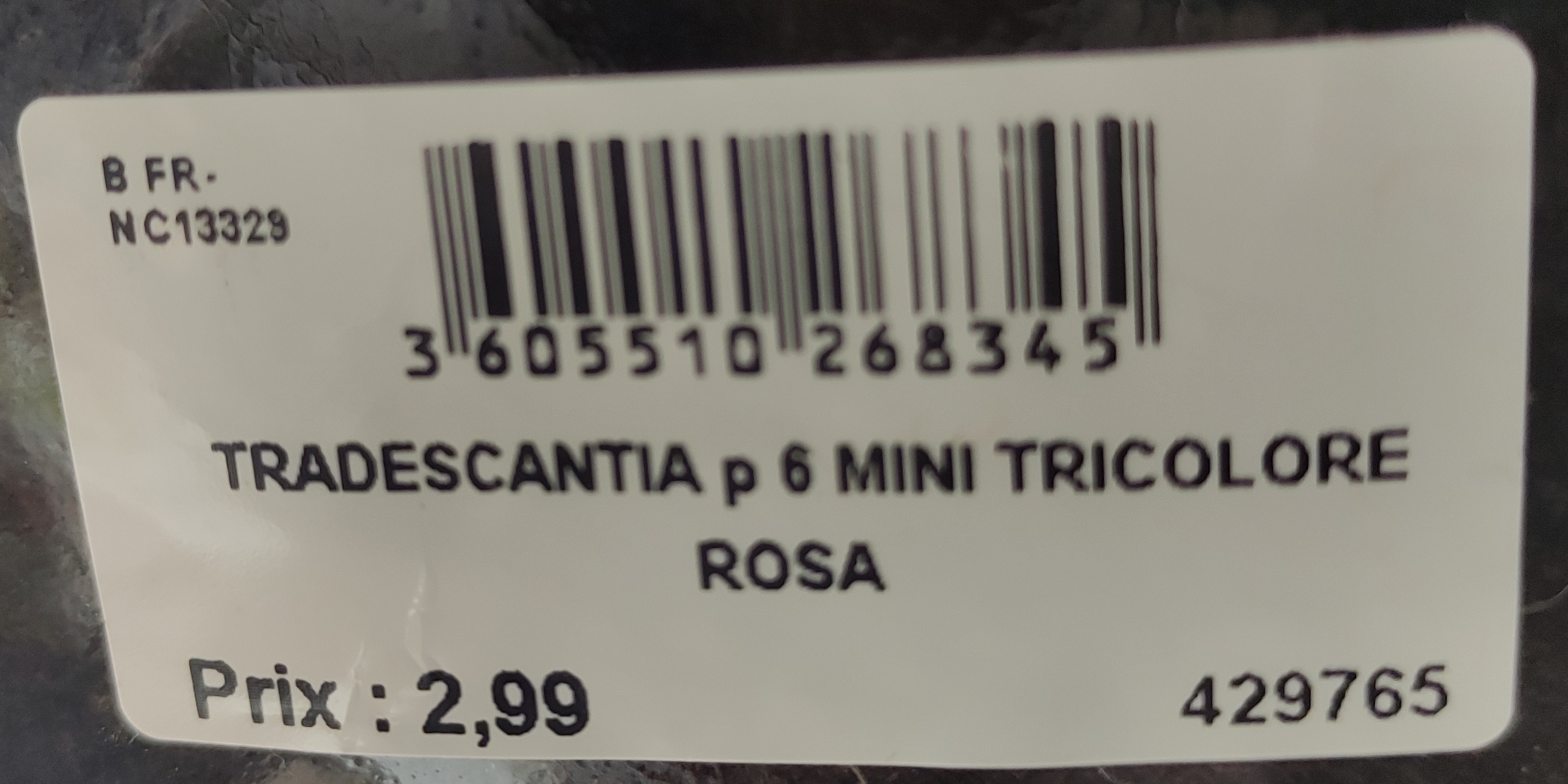 L'étiquette indique : tradescantia tricolore, et mini certainement pour indiquer la grandeur du pot donc mini pot de tradescantia.