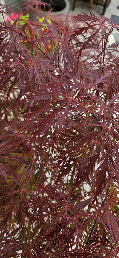 Le mien (Garnet ?...) est en plein soleil et se porte mieux que d'autres, comme le Sango Kaku dont on aperçoit des feuilles en haut à gauche :