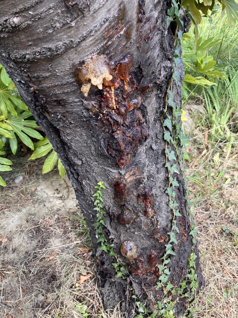 Selon le beau-frère, il se pourrait que les 2 cerisiers soient atteint de gomose.