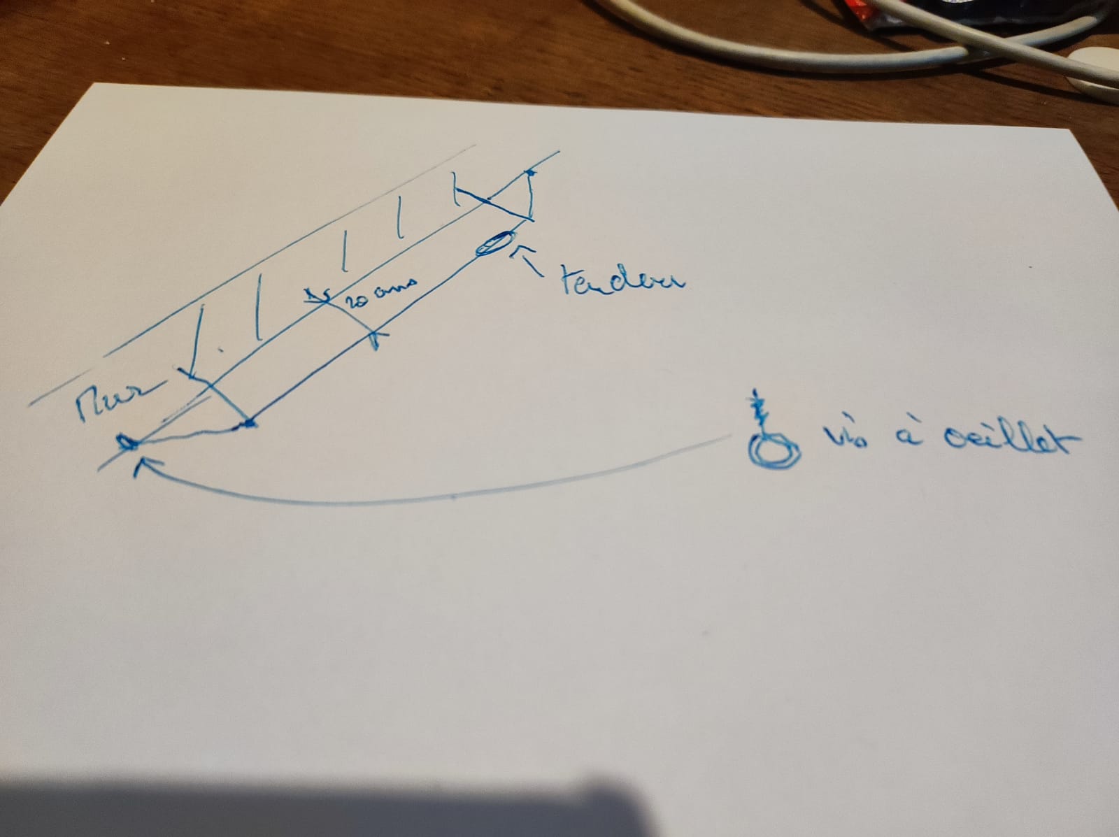 Super idée pour limiter la force exercée sur les tiges filetées, par contre j'ai plusieurs palissages à réaliser sur un mur de 40m de long et ça revient quand même chère c'est pas donné le tout en inox. J ai regardé pour des vis a oeillet en m20 inox il m en faudrait une trentaine à 20e la vis plus 10 à 15 m de tige filetée en inox en m20... une idée sur le diamètre à utiliser dans un but de réduction des coûts ?