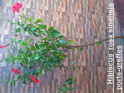 J'avais sélectionné ce jeune et beau hibiscus rosa-sinensis pour recevoir des greffons d'autres variétés. Sa tige droite , ses nombreuses ramifications , ainsi que sa résistance aux agressions extérieures avaient plaidé en sa faveur.