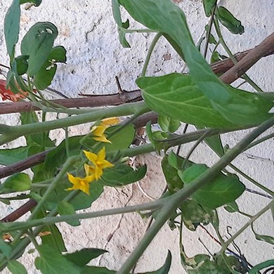 Les tomates de l'année dernière sont en fleurs, voire quelques nouaisons