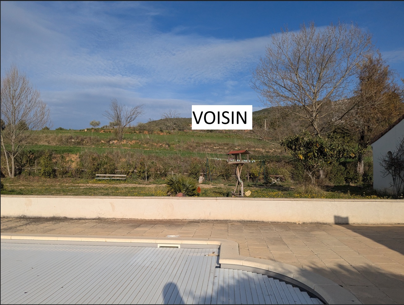 J’ajoute une photo faite à partir de la piscine pour que vous compreniez mieux comment est fait le terrain peut être, la haie est derrière l’étendoir à linge.