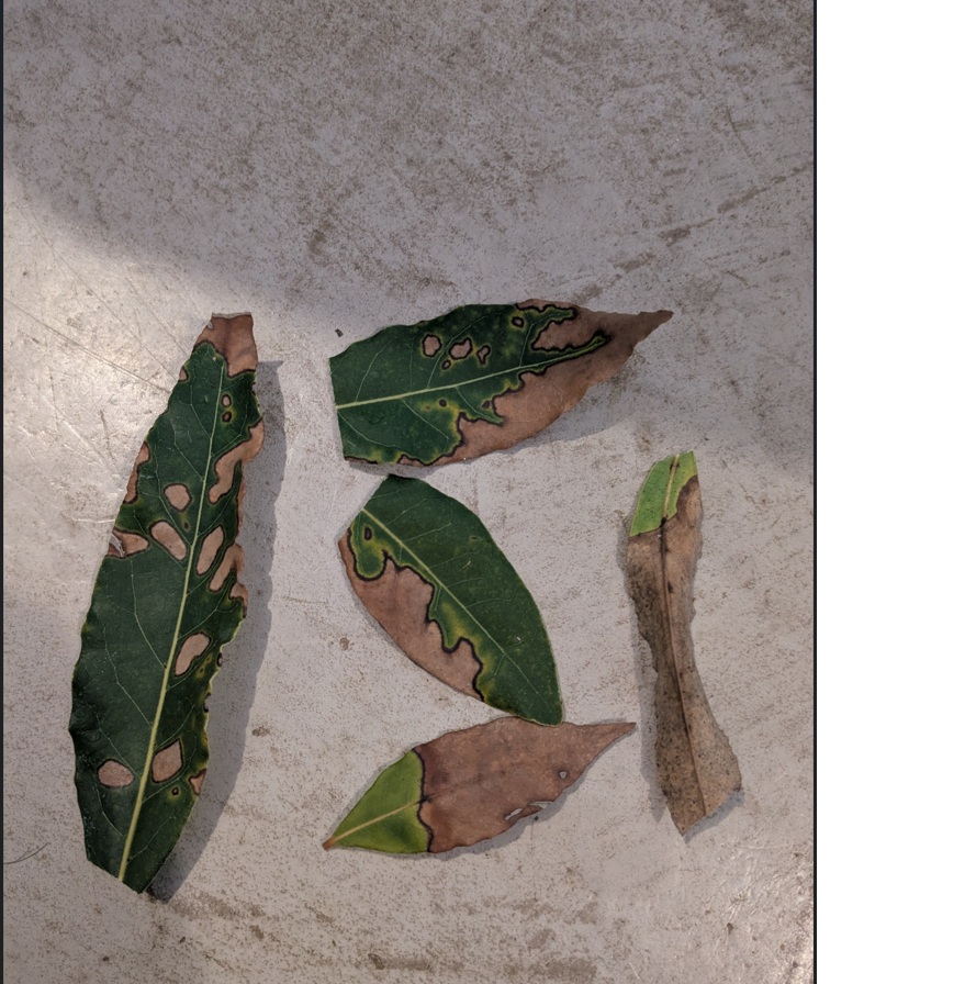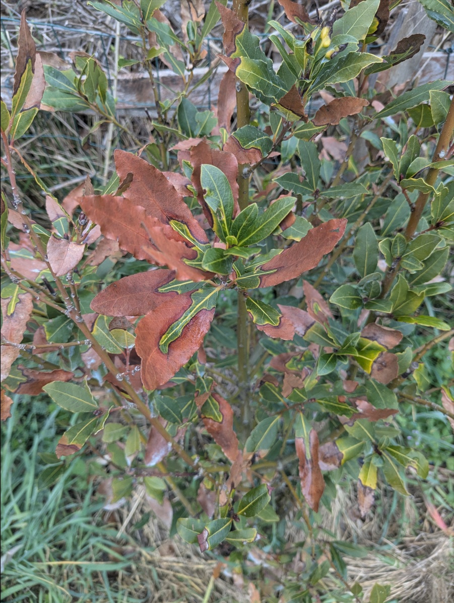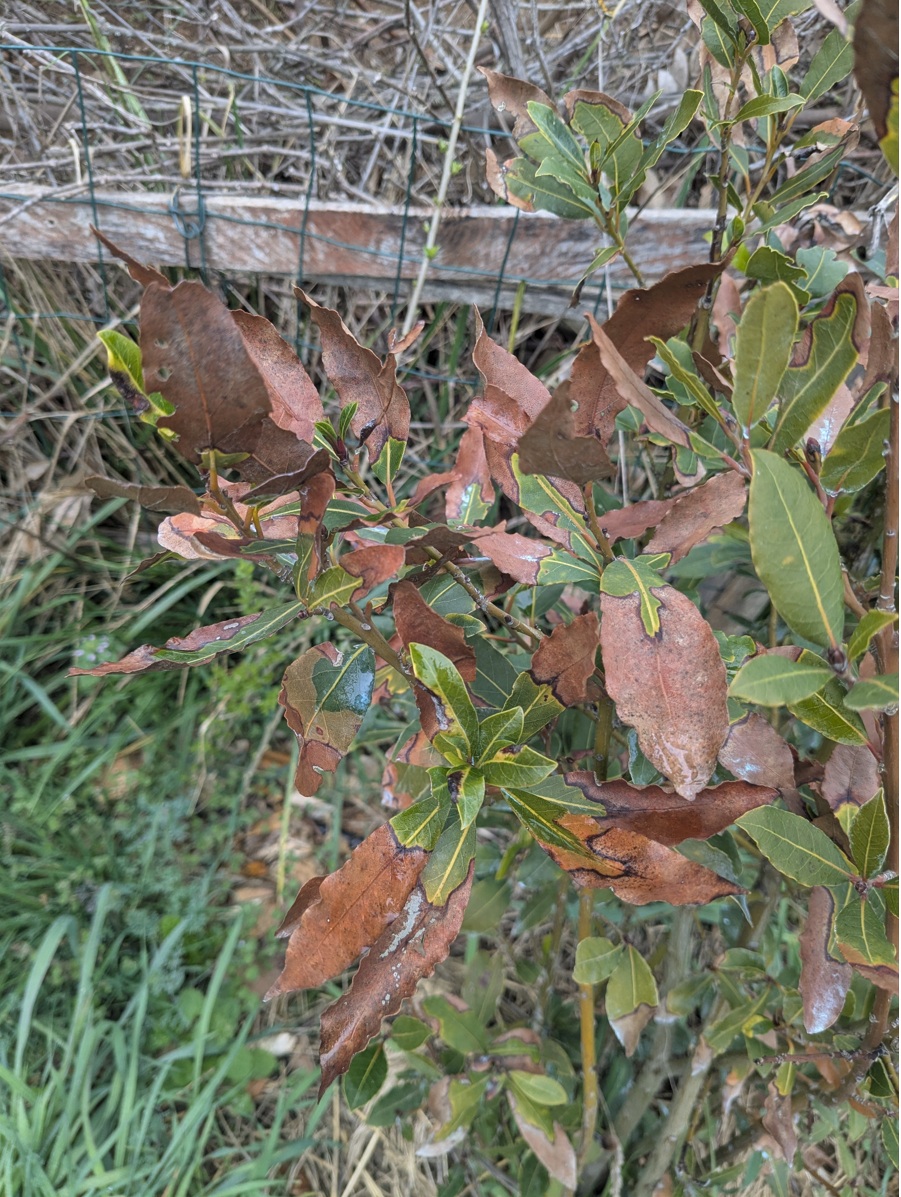 Daniel comme vous en avez parlé j’ai regardé de plus près les feuilles du laurier sauce qui ont séchées. Voici quelques photos, je me demande s’il ne s’agit pas d’une maladie mais je ne vois pas de parasite, cocon, trou dans le bois ou autre intrus. Seul les lauriers sauces sont concernés et certains ont vraiment un grand nombre de feuilles sèches.