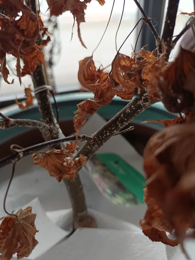 ), enlever les feuilles sèches avant pour bien aérer. Dehors, ça se développe pas....