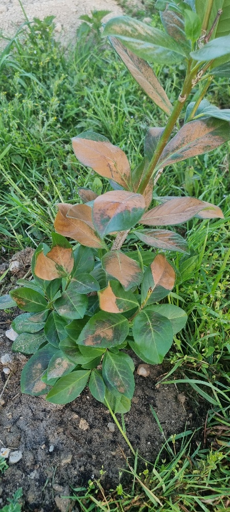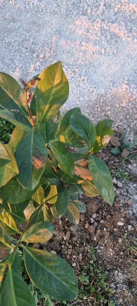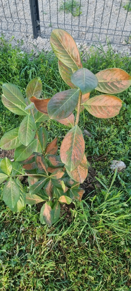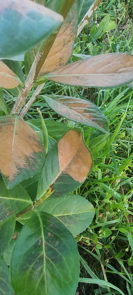 Les feuilles tachées, ne sont pas sèches, ni noires. Elles ne semblent pas se détacher de la branche. A part quelques unes qui sont au sol.