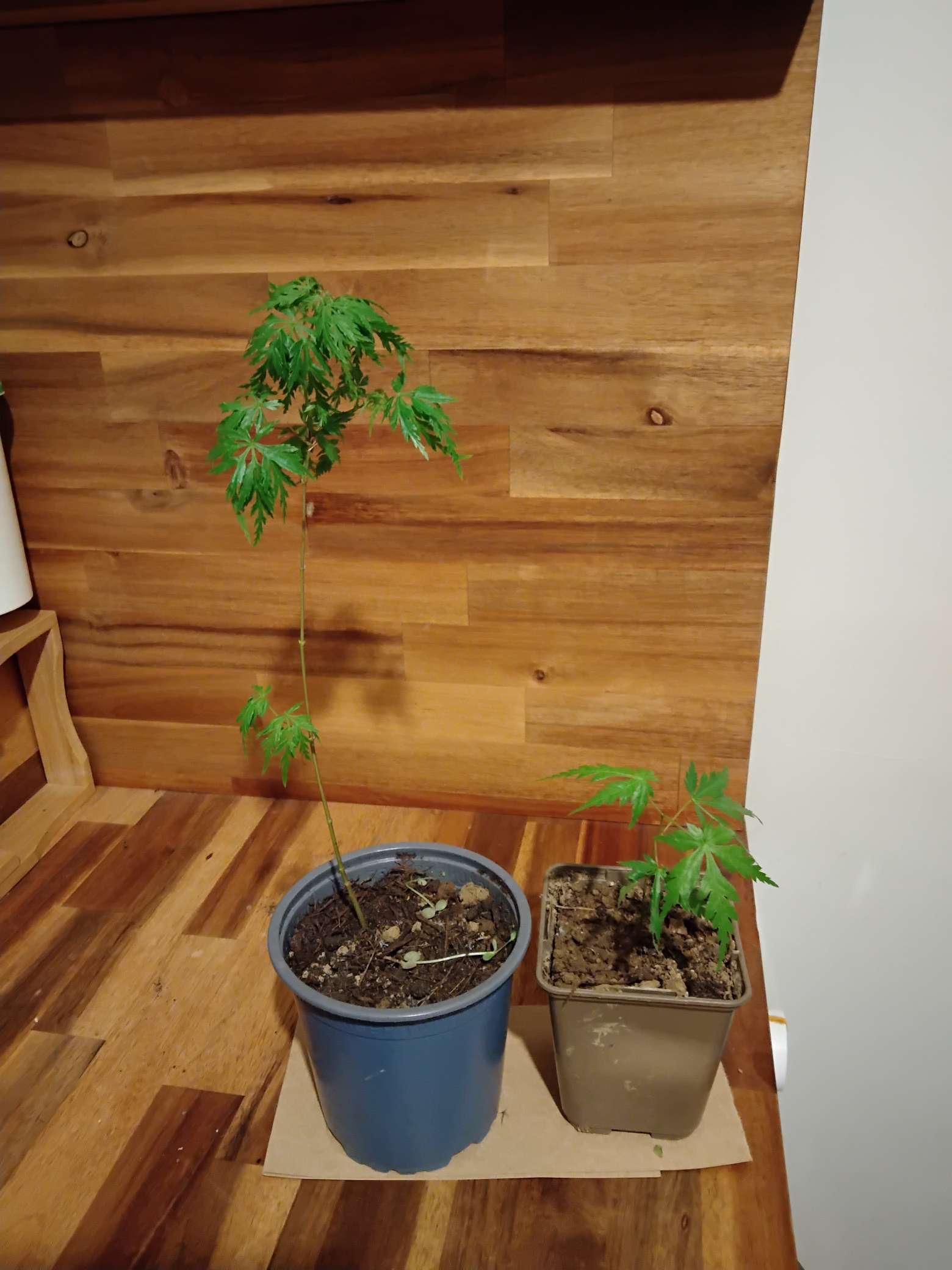 On m'a donné ces deux petits plants issus de semis spontanés. L'un a un an, et l'autre deux ans.