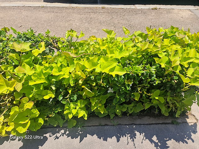 Il n est pas rare de croiser au bord des trottoirs des patates douces utilisées comme ornementales ,