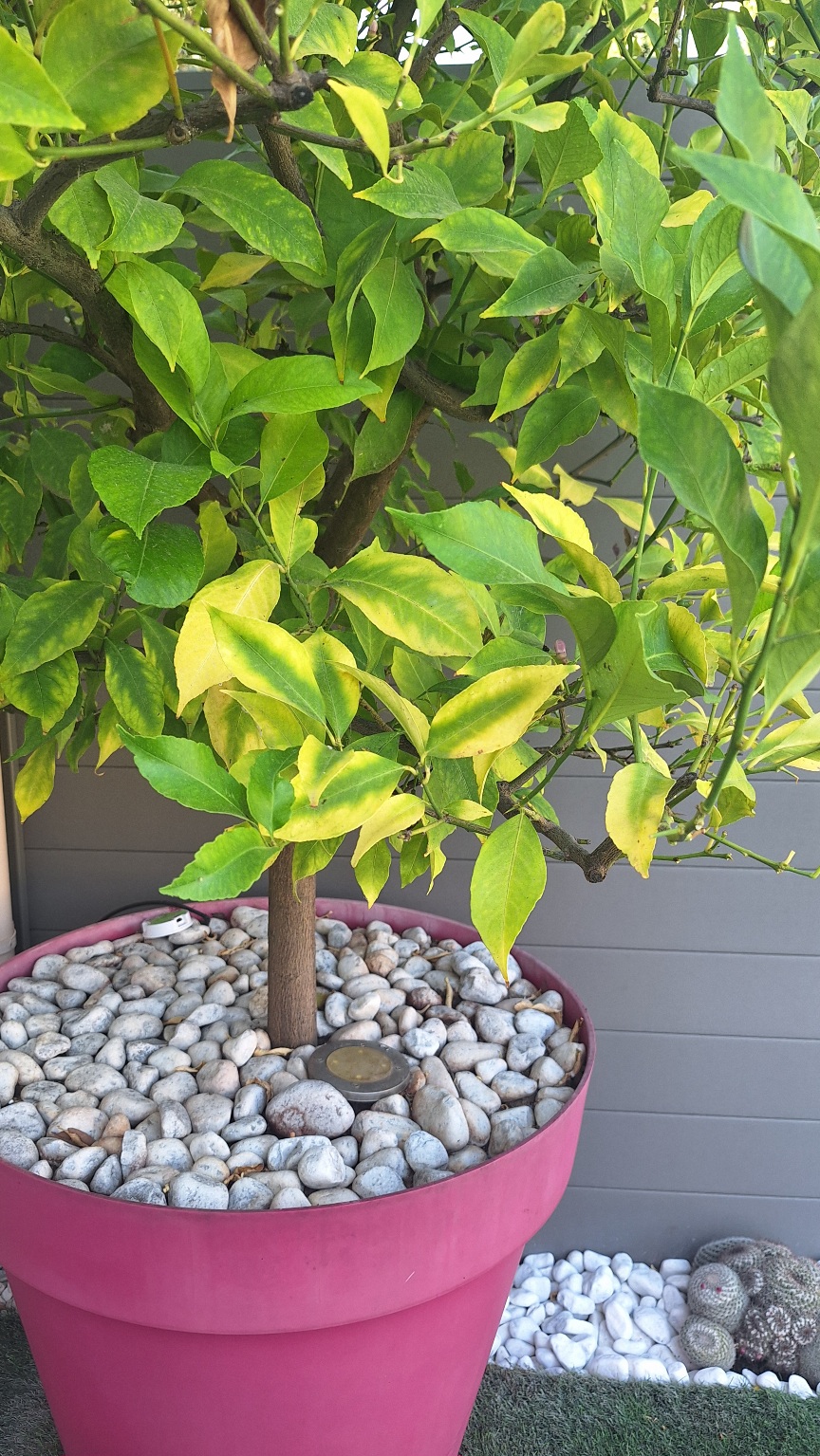En premier, il serait bon d'enlever les cailloux calcaires qui contrarient les agrumes.