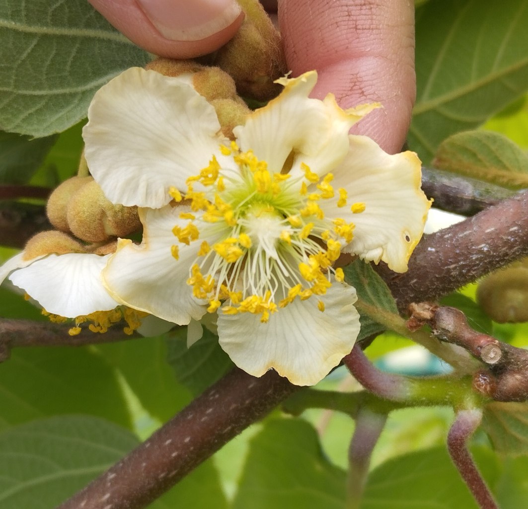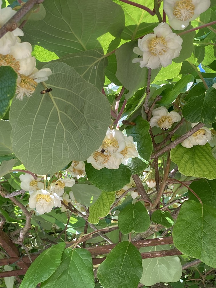 j'ai aussi 2 kiwis jaunes mâles (suite à une erreur ...) et les fleurs sont également plus petites