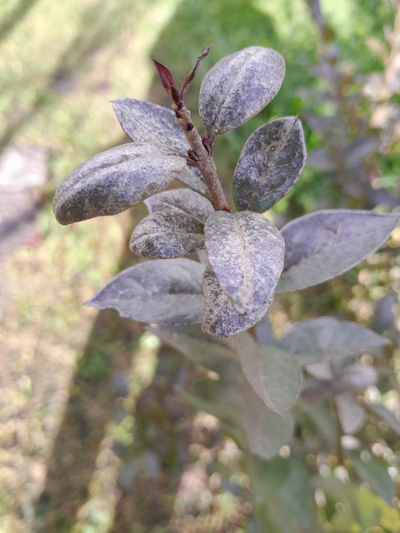 Il me semble que cela ne ressemble pas à de l'oïdium, car les feuilles sont comme métallisées et comme durcies. Même ce qui ressemble à des grains ou de la poudre est en fait "solide".