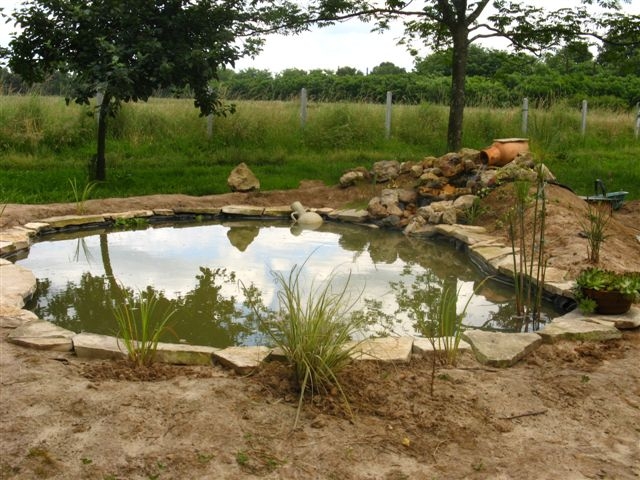 Eh bien voilà le boulot 6 mois plus tard. Malgré le temps pourri, nous avons tout de même trouvé le créneau pour poser la bâche, et commencer à emménager le pourtour de notre bassin. La pompe est installée également ainsi qu'un filtre. Le lendemain du remplissage, il y a eu de l'orage et beaucoup de pluie. Donc je pense qu'il faudra un certain temps avant que l'eau devienne plus claire. Voilà donc quelques photos, mais je dois encore installer beaucoup de plantes à l'extérieur et dans le bassin également. Ainsi que trouver quelques galets pour terminer de cacher la bâche. En tout cas merci à tous pour m'avoir refilé votre virus !