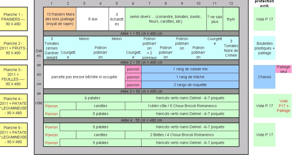 j'avais besoin d'un plan bete et mechant de potager aussi, je l'ai donc fait sous excel, a sauvegarder chaque année pour la rotation
