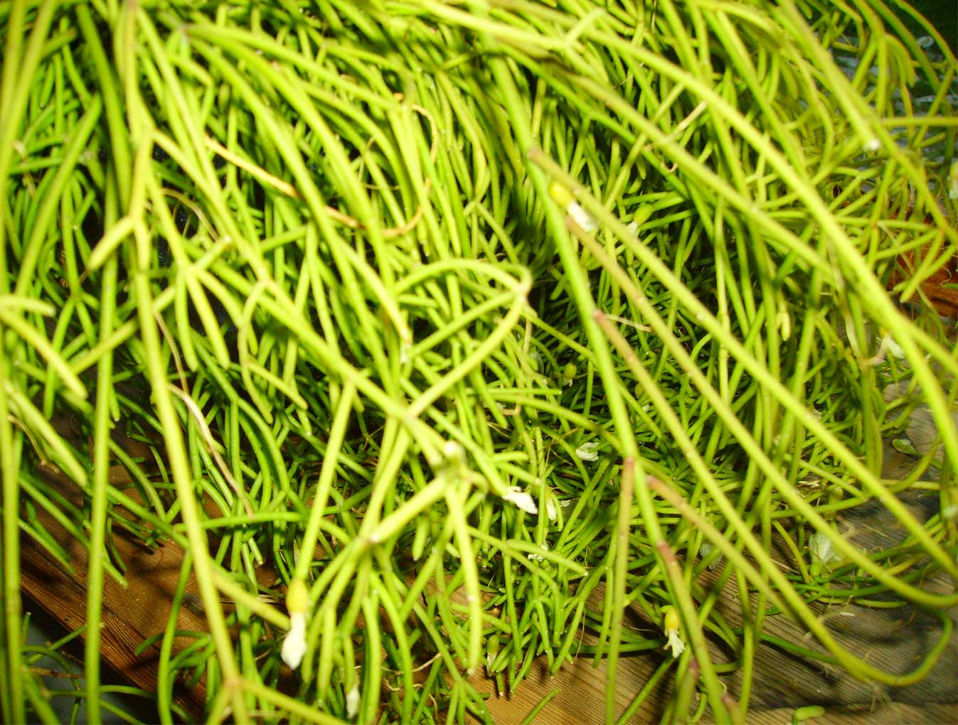 Je pense qu'il faut chercher du coté des Rhipsalis, plante épiphyte de la famille des cactacées.
