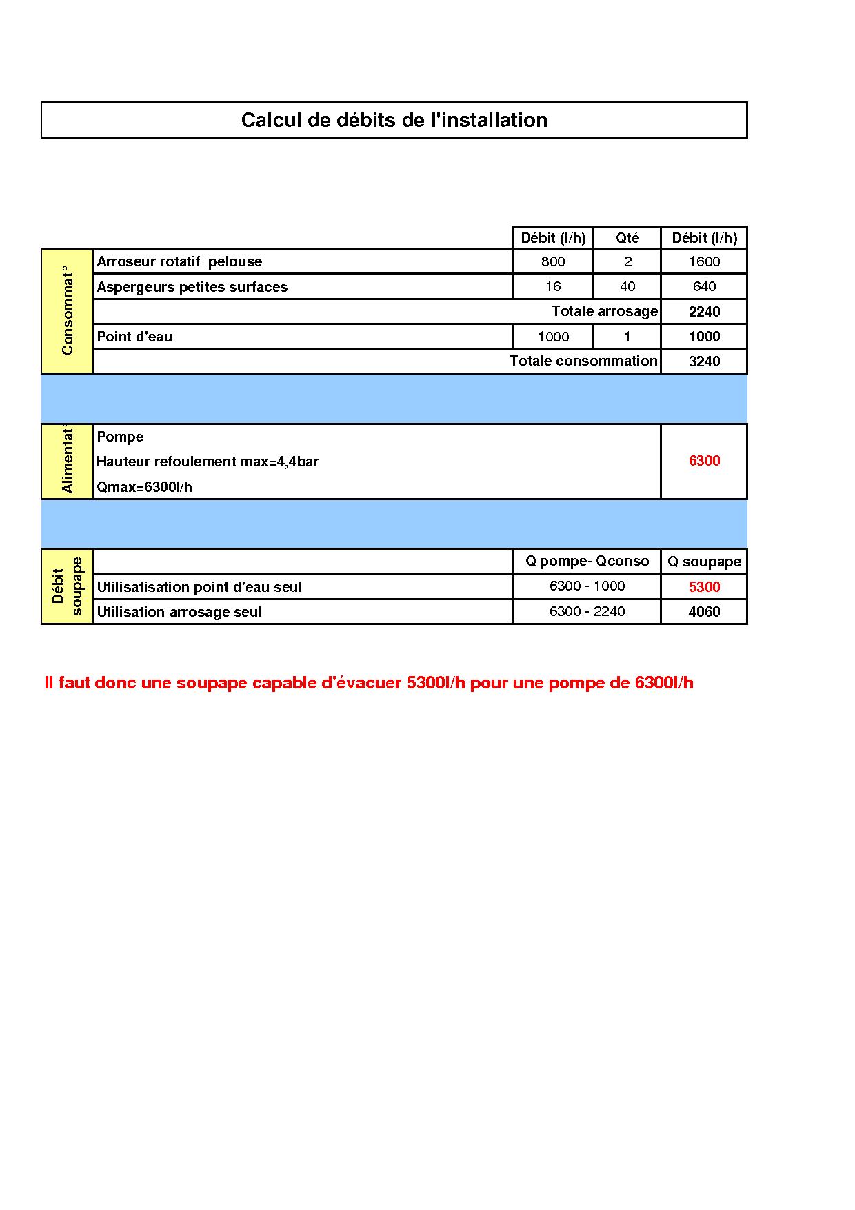 La pompe commandé par l'horloge ou l'interrupteur refoule en continu en continue, et la surpression éventuelle dans l'installation si l'arrosage n'évacue pas tout, sera évacué par la soupape.