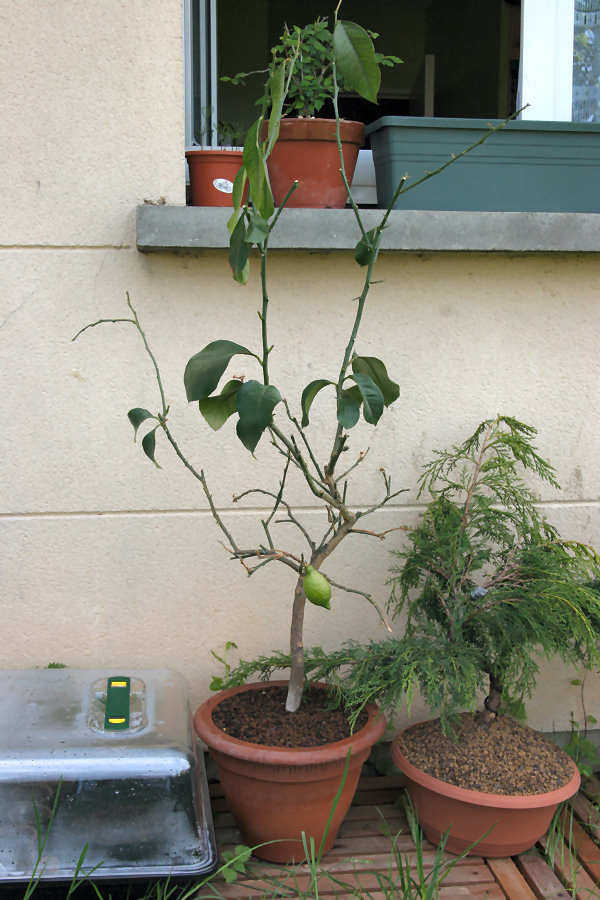 On me l'a offert en octobre dernier, celui ci a passé un hiver très difficile en intérieur dans une pièce chauffée... Je n'avais pas pièce non chauffée et bien qu'ayant un jardin, j'imaginais que l'hiver dehors était pire que dedans (je crois m'être trompé... vu l'hiver doux, un voile d'hivernage aurait surement suffit)... Bref le mal est fait et mon citronnier récupère très très mal...