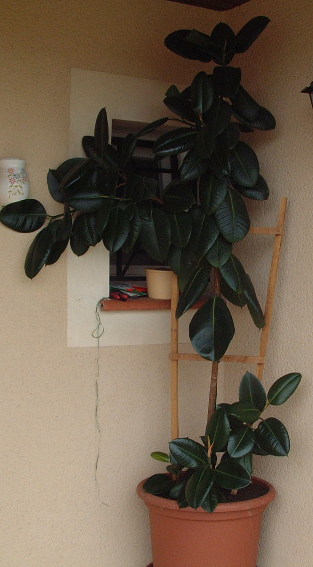 J'ai un caoutchouc qui est très joli, pour l'instant je viens de la sortir dans mon hall d'entrée durant le printemps et l'été, je le rentrerai dès l'automne. Il va profiter et je pense que j'aurais un problème à le remettre à l'intérieur en septembre, je pense qu'il touchera le plafond.