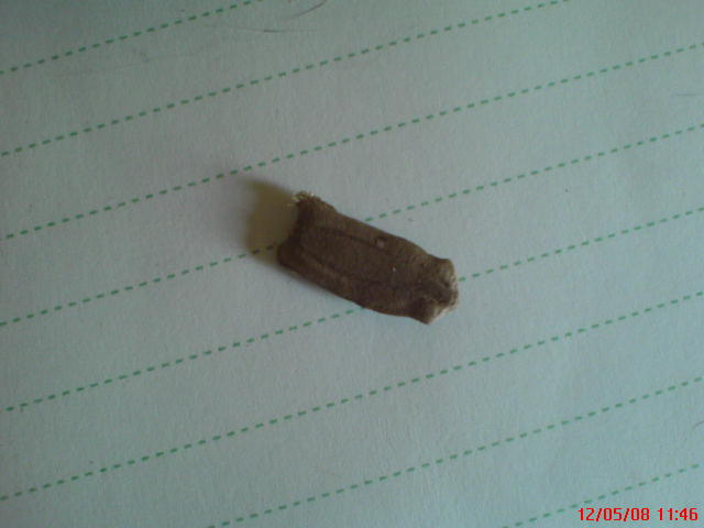 voilà, c'est une espèce de petite graine "carrée", désolée pour la qualité de la photo...
