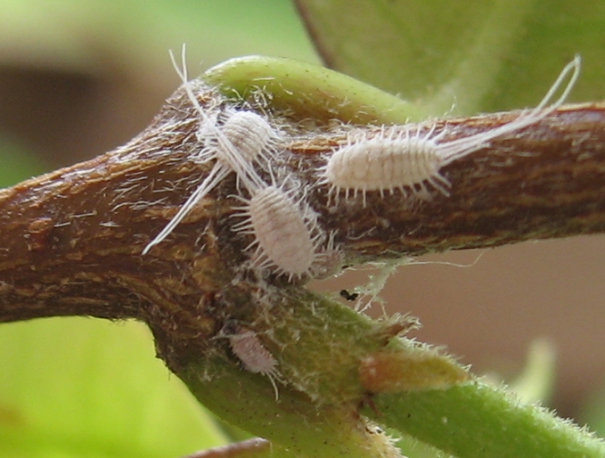Ils se reproduisent à grande vitesse et se mettant dans des interstices (sous les fleurs, entre les feuilles). Ils forment ensuite des sortes de petites cocons blancs poilus.