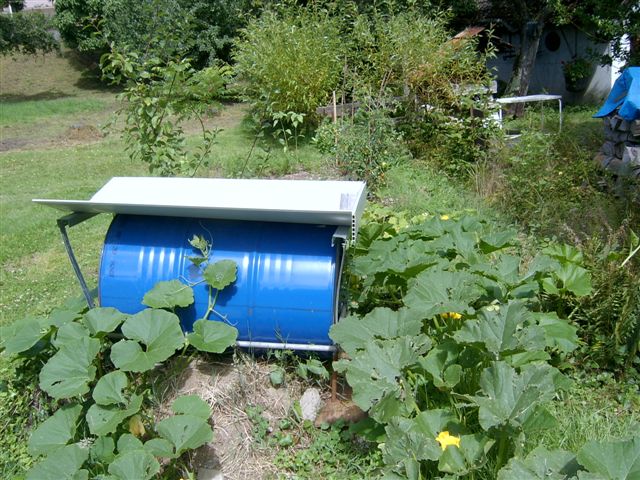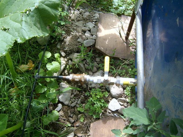Ayant un (très) petit potager (20 m²), j'ai récupérer un fut de 200l pour pour faire une réserve pour un arrosage automatique avec goutteur utilisant la gravité.
