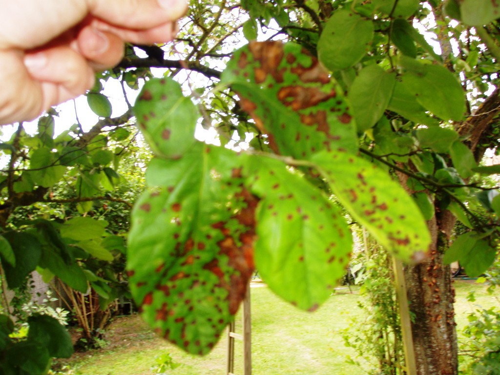 Par contre les taches sur les feuilles sont dû à une maladie cryptogamique: l'ENTOMOSPORIOSE qui est favorisée par les printemps et les étés humides.