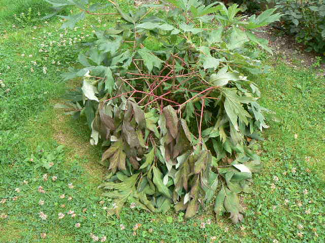 voila un arbre à pivoine de 5 ans, la moitié est toute flétri, soins habituel, au printemps une poignée d'engrais et binage, je suis dans l'aube à côté de troyes.