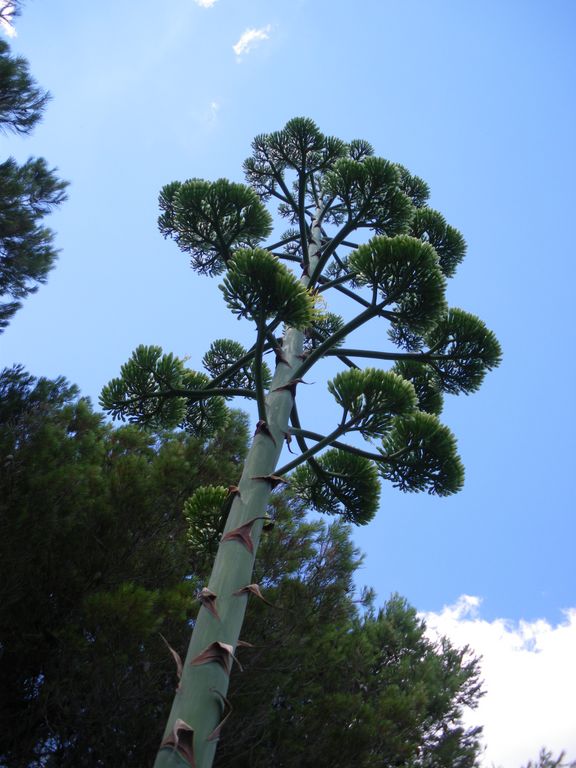 je viens vous faire partager une petite photo d'un beau specimen d'agave en fleurs que j'ai croisé sur la cote, elle etait vraiment impressionante vu d'en bas! a plus
