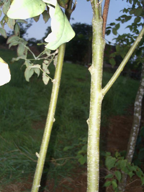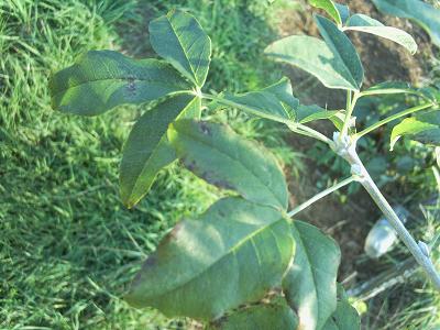 Je reviens vers vous pour une nouvelle identification: l'automne dernier j'ai planter cet arbuste pensant, (re), qu'il s'agissait d'une variété de saule mais j'ai un doute à cause de la forme des feuilles qui ne ressemble pas aux feuilles de saules que je connais, on remarque sur la photo des feuilles, que le pétiole supporte trois feuilles, un peu comme le ferait un trèfle, l'écorce du tronc, elle, pas contre, ressemble assez à celles des saules. Alors je doute. Pouvez-vous m'aider. :?: