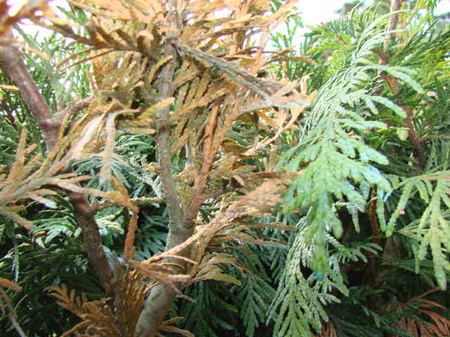 Je suis ennuyé depuis 2/3ans avec ce vert. Jusqu'a l'année passée, j'ai laissé faire sans savoir ce qu'il arrivait! Erreur grave!. L'année dernière, plus de 1/3 de ma haie était touché. J'ai décidé de regarder ça de près et pris la décision de délogé 1 à 1 les vers de dans les trons avec un tourne vis fin. Gros dégats!!! Dans certain pieds, un 10ène de vers étaient présents. Dans les cas les plus graves, j'ai coupé le tronc à 10cm en laissant quelques branches OK. J'en ai changé 14 sur une haie composée de 150 pieds. C'est très long, très fastidieux, mais cette année, ils sont tous reparti dans de bonnes conditions.