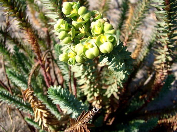 je pense à l'euphorbe myrsinite, semblable à une plante grasse: