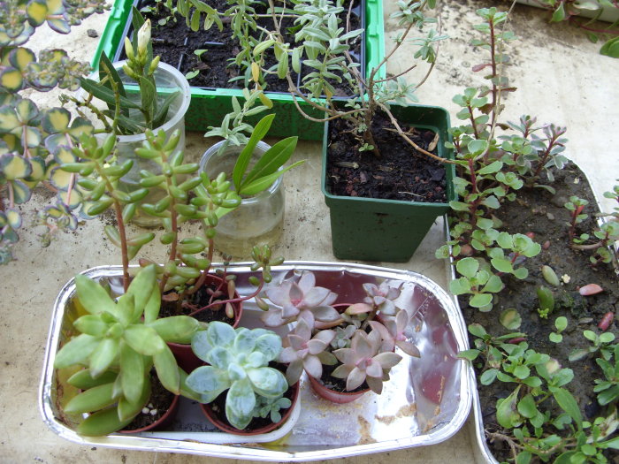 je pense qu'il y a un sedum rubrotinctum, mais les trois autres ???