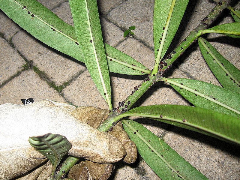 De petits cônes bruns pullulent sur les branches et feuilles de mon laurier rose!!!