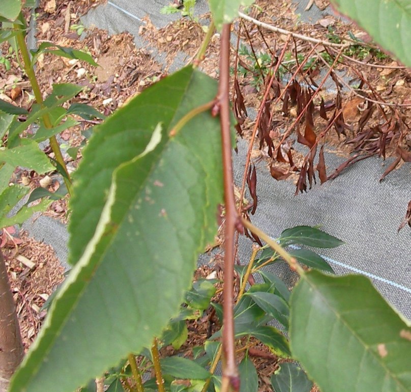 Un Prunus, certain, sans doute Prunus avium, ou un semis spontané d'une variété de cerisier cultivé, noyau tombé là après après avoir mangé une cerise, ou apporté par un oiseau.