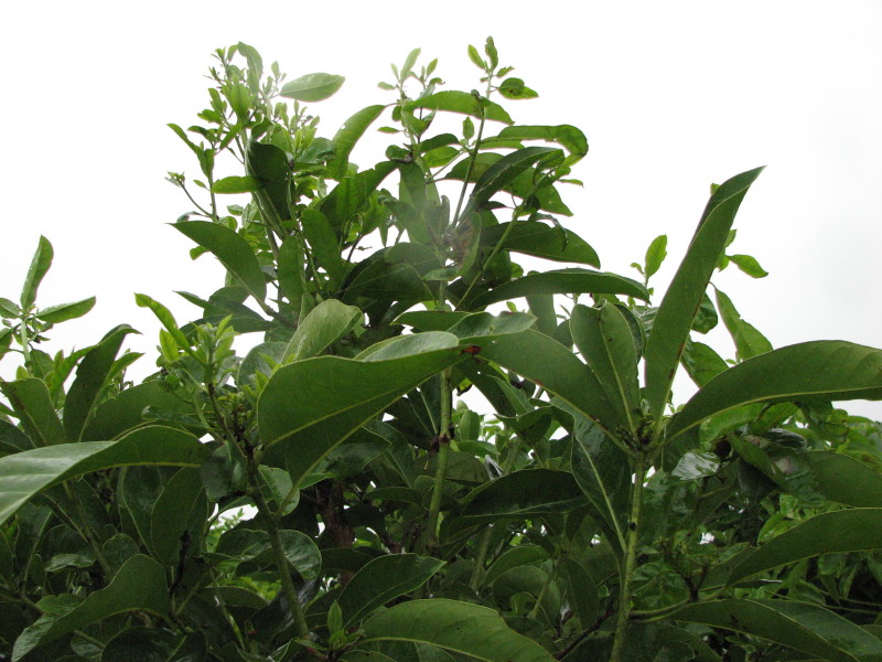 Comme ça de loin, je dirais Richeria grandis, pour ton "aphrodisiaque". On le trouve dans tous les pays tropicaux sous le nom de bois-bandé, et les grandes feuilles plates y ressemblent. si ce n'est lui, c'est donc son frère !