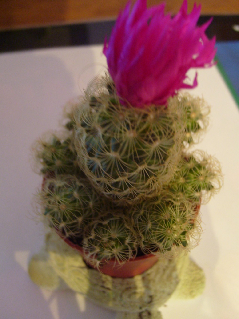 mais il est superbe, il devrait tres vite exploser surtout vu le nombre qu'ils sont! n'hesite pas a le rempoter dans un pot un peu plus grand au printemps (1/3 terreau, 1/3 sable, 1/3 pouzzolane ou autre) et a l'engraissé tous les 15 jours et les mettre en plein soleil apres adaptation pour eviter les coups de soleil!