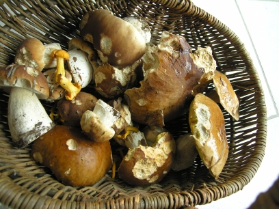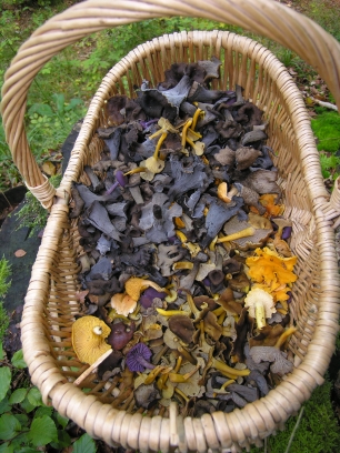 Les noirs dans le panier, c'est des trompettes des morts, j'en n'ai jamais vu en vrai, pas plus que les morilles d'ailleurs, en revanche dans le bois de Vincennes (si, si) on trouve des mousserons parfaitement comestibles, et j'ai même trouvé des "champignons de Paris" tout aussi bons ! Comme quoi...
