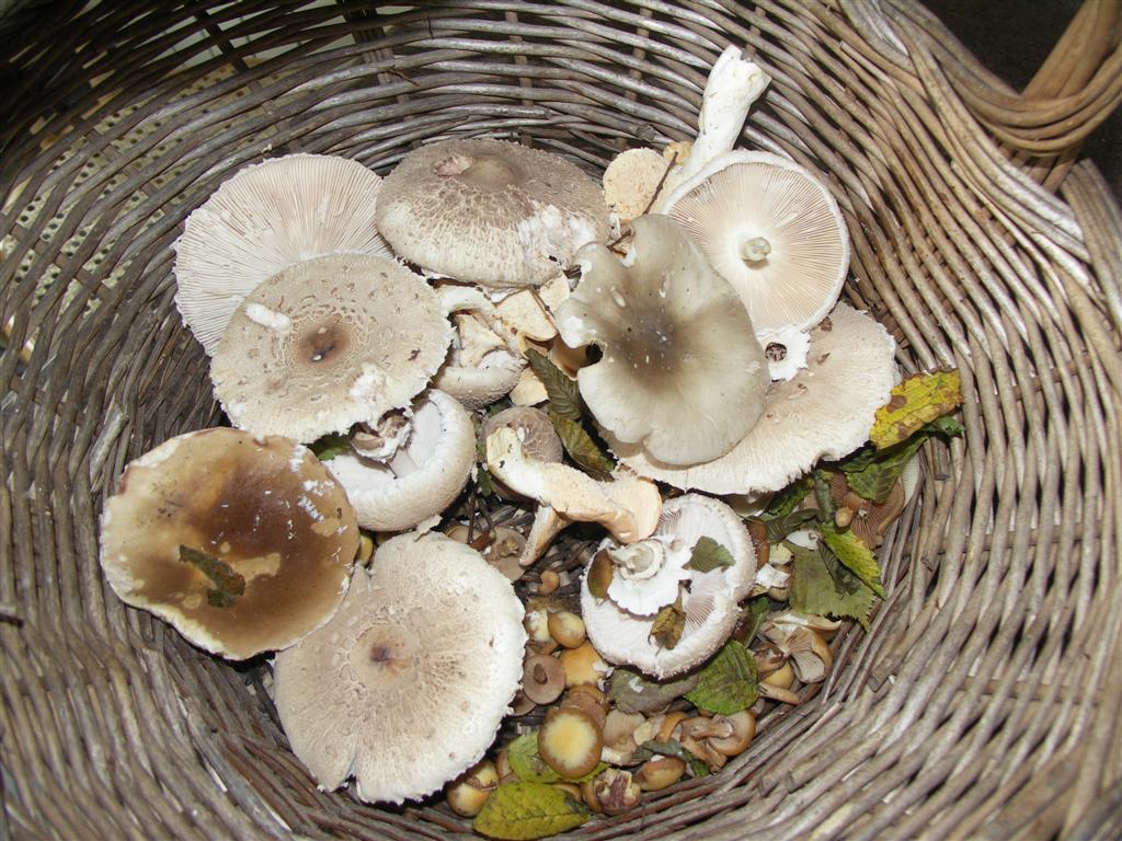 quelques coulemelles , pieds de mouton, un seul cèpe, une poignée de pholiote changeante et quelques clitocybes nébuleux
