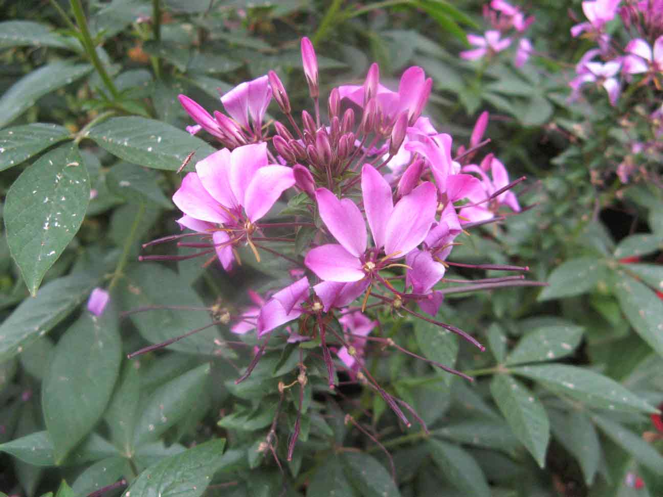 L'une des deux ressemble étrangement à un cléome, mais en plus buissonant, et avec des fleurs plus petites