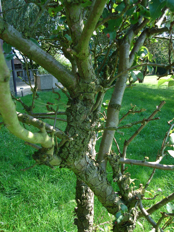 Badigeonnage de bouillies bordelaise a fort dosage des troncs au printemps et en automne, traitements aux huiles pour l'hiver.