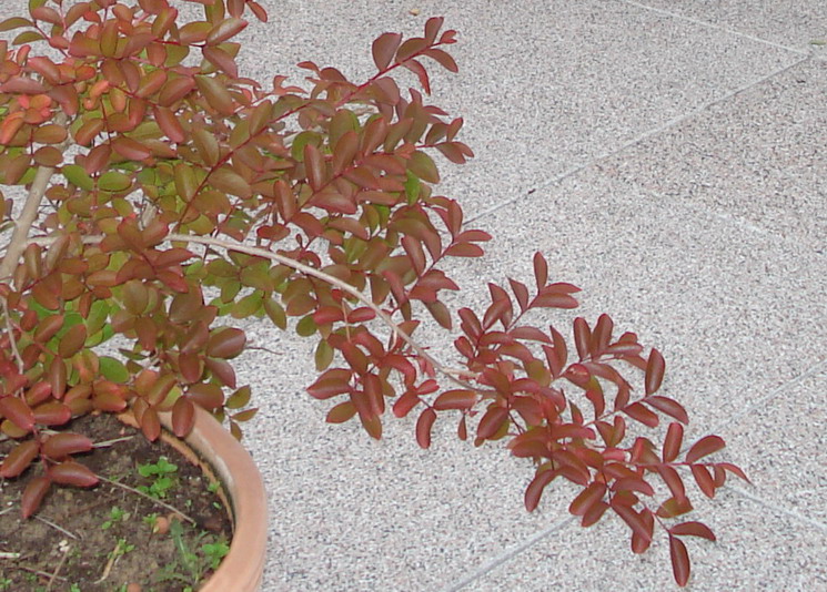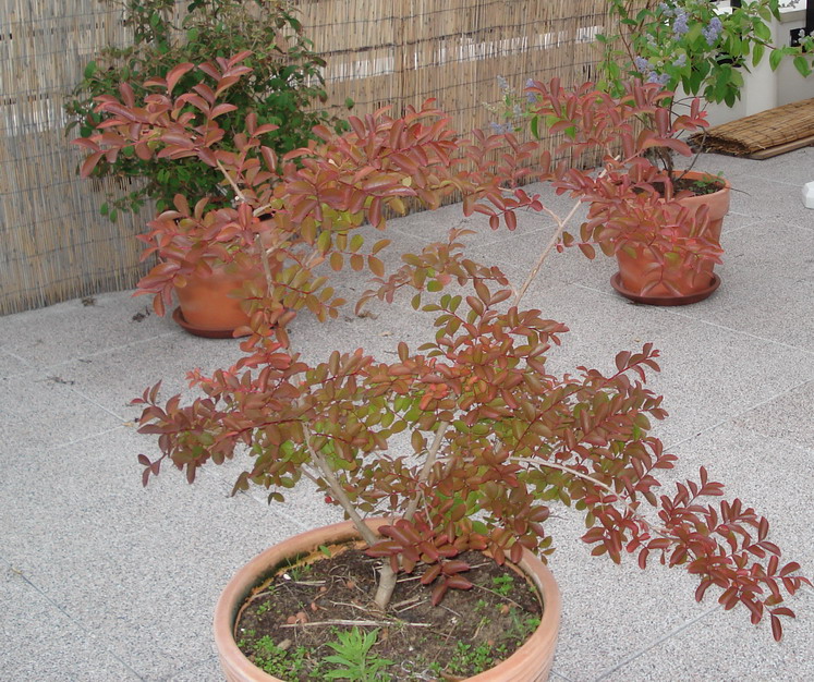 Comme j'ai également des lagerstroemias, j'ai fait une photo avec en arrière plan un lagerstroemia et au premier plan le détail d'une branche. Ça ne se ressemble pas trop...