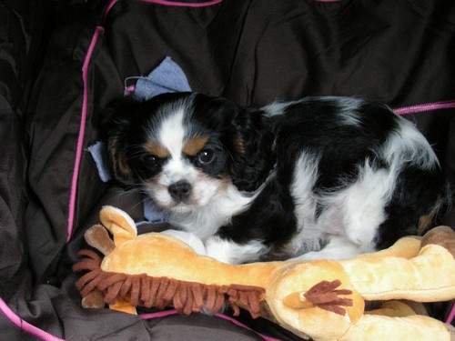 Ca y'est le grand jour est arrivé, samedi nous sommes allés chercher Dibsie en Savoie... Elle est parmis nous depuis deux jours. C'est un amour de toutou, mais aussi un chiot très joueur qui a de sacrés quarts d'heure de folie!! La lapine a du mal à s'habituer à sa présence, surtout quand elle s'approche et qu'elles se retrouvent nez à nez, la lapine se met à battre des pattes arrières... il faut lui laisser le temps de s'habituer.. Sinon, comme promis voici des photos d'elle et je dirai même son journal de bord puisque je lui ai ouvert un blog pour que ses éleveurs puissent la suivre.. ils étaient tristes de la voir partir car ils ont eu un lien particulier avec elle, ils ont du la nourrir au biberon et à la pipette et ont du beaucoup la veiller...